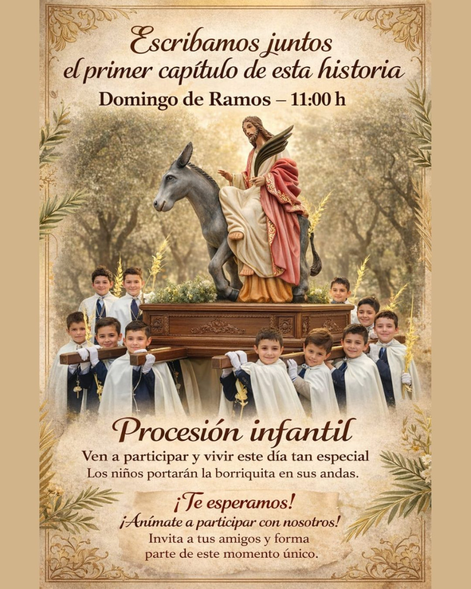 - Bendición y procesión infantil de Ramos con la imagen de La Borriquita